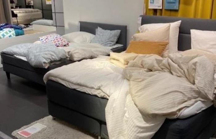 Questa volta, però, la notizia è vera: il reparto notte del negozio è stato trasformato in una grande camera da letto, dove “gli sventurati” hanno mangiato e dormito.