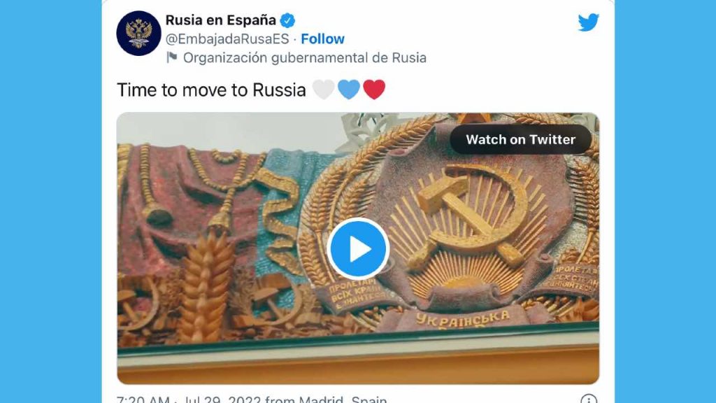 — Rusia en España (@EmbajadaRusaES) July 29, 2022