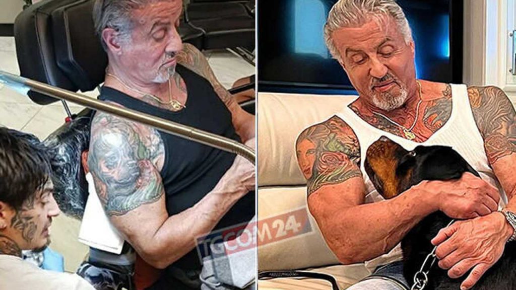 Il celebre attore Sylvester Stallone ha cancellato il tatuaggio che ritraeva il viso della moglie sulla sua spalla sostituendolo con quello del suo cane Butkus, lo stesso che compare in “Rocky“.