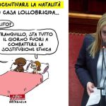 Quella apparsa nel numero di oggi – giovedì 20 aprile – de Il Fatto Quotidiano è davvero una causa di dissidi, dal momento che il famoso vignettista Natangelo ha deciso questa volta di rappresentare un personaggio non politico. Tale Arianna, donna non conosciuta a livello mediatico, la cui unica ‘colpa’ per esser finita in tale immagine è quella di essere la sorella di Giorgia Meloni e la moglie di Francesco Lollobrigida.